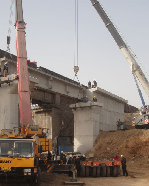 橋式起重機是橫架于車間、倉庫和料場上空進行物料吊運的起重設(shè)備。由于它的兩端坐落在高大的水泥柱或者金屬支架上,形狀似橋。橋式起重機的橋架沿鋪設(shè)在兩側(cè)高架上的軌道縱向運行,可以充分利用橋架下面的空間吊運物料,不受地面設(shè)備的阻礙。它是使用范圍更廣、數(shù)量更多的一種起重機械。