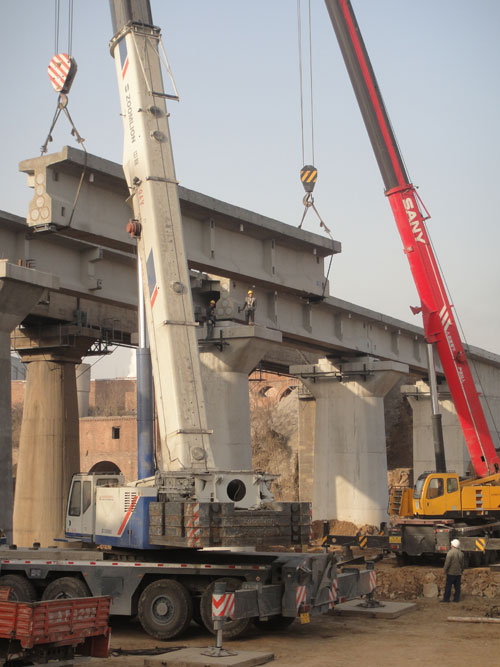 橋式起重機是橫架于車間、倉庫和料場上空進行物料吊運的起重設(shè)備。由于它的兩端坐落在高大的水泥柱或者金屬支架上,形狀似橋。橋式起重機的橋架沿鋪設(shè)在兩側(cè)高架上的軌道縱向運行,可以充分利用橋架下面的空間吊運物料,不受地面設(shè)備的阻礙。它是使用范圍更廣、數(shù)量更多的一種起重機械。